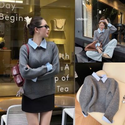 Nếu muốn vẻ ngoài trông tri thức và ngọt ngào hơn, hãy thử layer áo sweater cùng áo sơ mi bên trong.